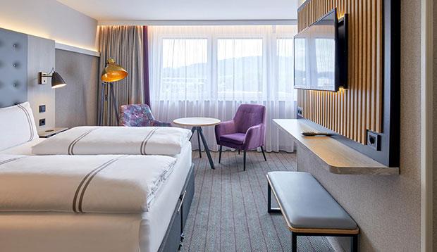 Erleben Sie den atemberaubenden Bodensee und checken Sie in unser Premier Inn Lindau ein. Wir heißen Sie in 115 modern ausgestatteten Zimmern willkommen und sorgen für einen komfortablen Aufenthalt. Die Insel Lindau, zahlreiche Sehenswürdigkeiten, das Messegelände von Friedrichshafen und die benachbarten Länder sind dank perfekter Verkehrsanbindung leicht zu erreichen. Vor Ort warten der Bodensee und ein traumhaftes Alpenpanorama. Entspannen Sie in der Therme Lindau oder genießen Sie einen traumhaften Kulturabend bei einem Besuch der Seebühne Bregenz. Kehren Sie am Abend gerne wieder bei uns ein. Wie wäre es mit einem Drink an unserer Bar, bevor Sie in superbequemen Betten traumhaft gut schlafen? Am Morgen servieren wir Ihnen gerne ein vielfältiges Frühstücksbuffet. So starten Sie gut in den neuen Tag.
