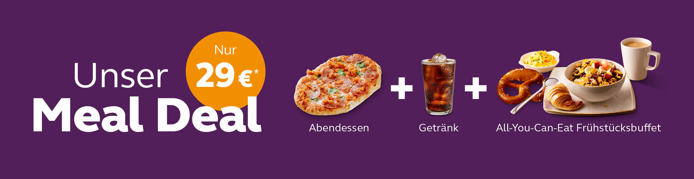 Morgens können Sie mit unserem vielfältigem Frühstücksbuffet in den Tag starten – und das schon für nur 29 Euro. Appetit bekommen? Dann buchen Sie den Meal Deal doch direkt online für Ihren nächsten Aufenthalt dazu!